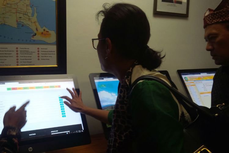 Sri Mulyani cek sistim keuangan online Banyuwangi . ©2018 Merdeka.com