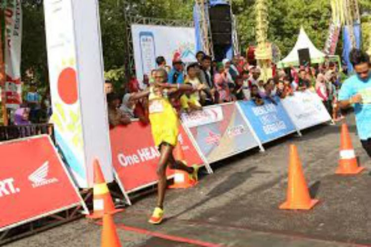Merdeka.com, Banyuwangi - Pelari Kenya berhasil menyabet gelar juara di ajang Banyuwangi International Run. David Kipkirui Mutai (30) asal Kenya membuat hat trick dengan menjadi jawara kategori 10K dengan catatan waktu 31 menit 57 detik. Adapun rekan senegaranya, Karega SamsonĀ menyabet juara dengan waktu 32 menit 3 detik. Kompetisi lari international ini diikuti 4 pelari asal Kenya. Di kategori women competition 10K ini dimenangi pelari Yulianingsih, catatan waktunya 39 menit 14 detik.