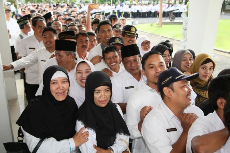 Antrean panjang PNS Banyuwangi menunggu giliran bersalaman dengan Bupati Anas. ©2017 Merdeka.com