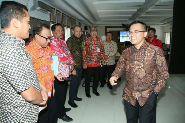 Bupati Anas dan pegawainya kompak mengenakan batik. ©2017 Merdeka.com