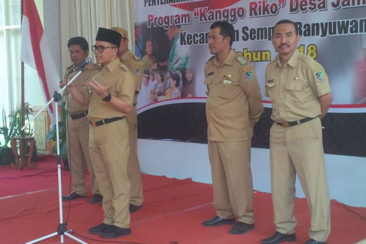 Bupati Anas dalam acara pembagian bantuan Kanggo Riko/Ahmad Suudi . ©2018 Merdeka.com