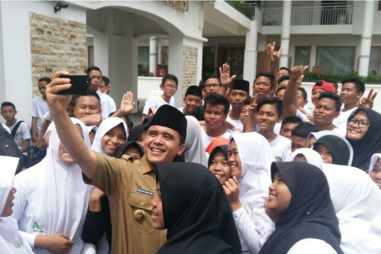 Anas wefie bersama anak yatim di Pendopo Kabupaten Banyuwangi. ©2016 Merdeka.com