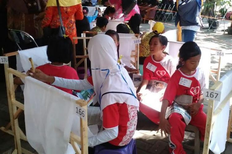 Siswa SD ikuti lomba membatik . ©2016 Merdeka.com