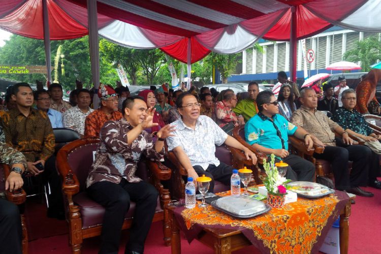 Merdeka.com, Banyuwangi - Menteri Koordinator Bidang Maritim dan Sumber Daya, Rizal Ramli buka tiga even Banyuwangi Festival (B-Fest) 2016, yaitu Festival Sego Cawuk, Agro Expo dan Art Week di Taman Blambangan, Banyuwangi, Jawa Timur, Sabtu pagi (9/4).