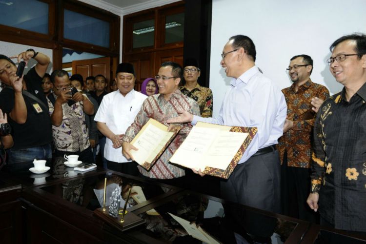 MoU Bupati Banyuwangi Azwar Anas dan Rektor Unair Moh Nasih. ©2016 Merdeka.com