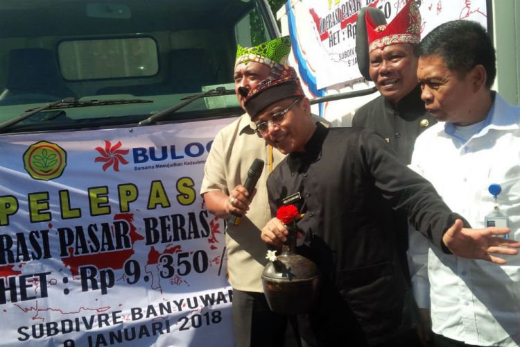 Bupati Banyuwangi Abdullah Azwar Anas melepaskan operasi pasar beras medium Bulog. ©2018 Merdeka.com