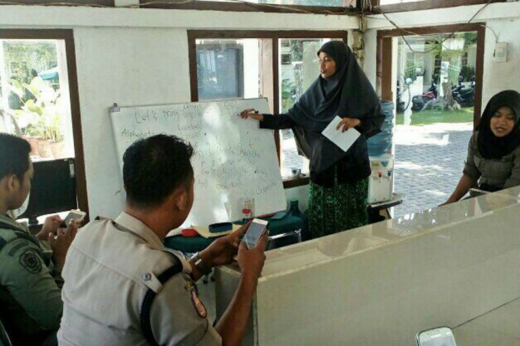Inisiatif tersebut, akhirnya diterima para petugas Satpol PP dengan semangat. Sudah dua minggu ini, Nety mengajari Satpol PP belajar Bahasa Inggris di pos jaga Kantor Pemkab Banyuwangi.