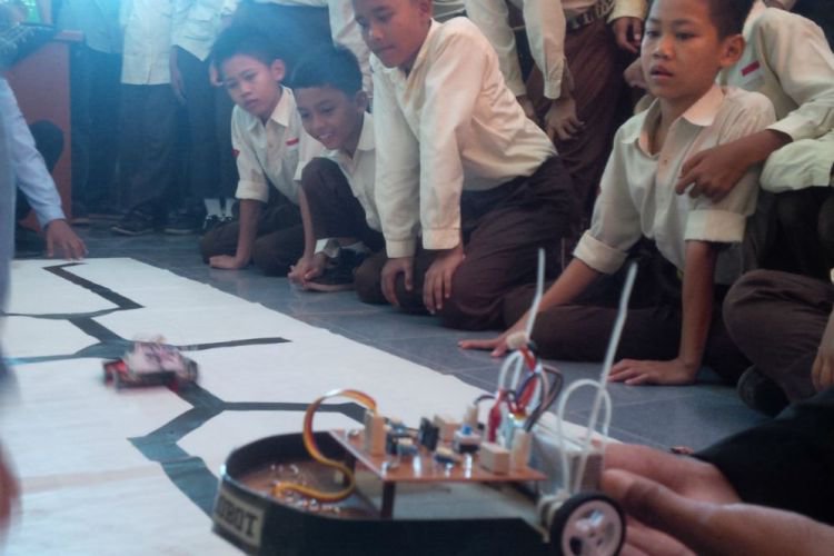 Robot yang mereka bicarakan adalah jenis line tracer atau robot mobil yang bergerak dengan merunut garis.