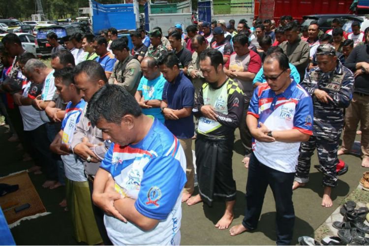 Solat Jumat itupun diikuti oleh ratusan orang. Mulai dari panitia, penonton, hingga pembalap terlihat ikut solat.