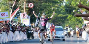 Merdeka.com, Banyuwangi - Etape ketiga International Tour de Banyuwangi Ijen (ITdBI) 2017 berlangsung Jumat (29/9) dengan mengambil start di Pelabuhan Muncar Banyuwanhi. Setelah menempuh lintasan sepanjang 116,3 kilometer, mereka finish di Paltuding, Gunung Ijen Banyuwangi.