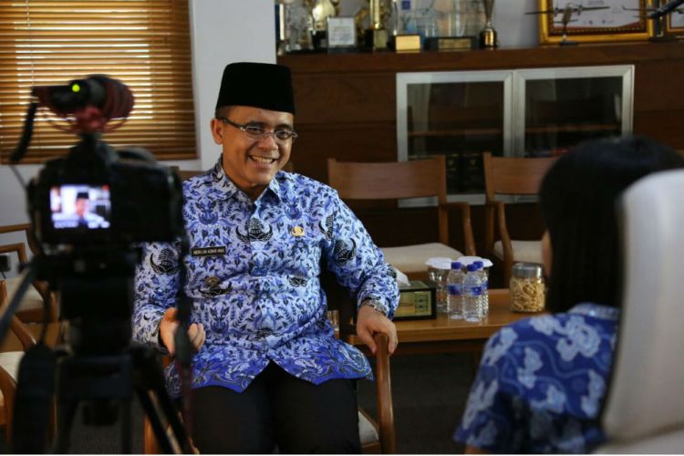 Bupati Anas saat diwawancara tim kreatif video inspiratif KPK. ©2016 Merdeka.com