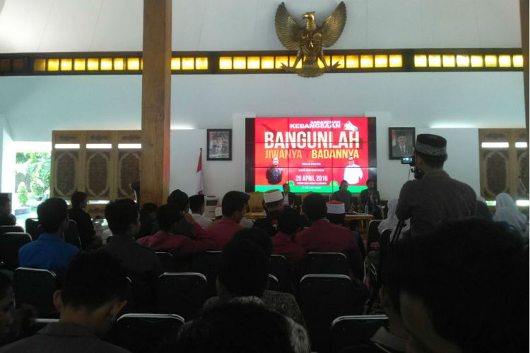 Merdeka.com, Banyuwangi - Ikatan Pelajar Nahdlatul Ulama (IBNU) Banyuwangi, mengadakan sarasehan atau diskusi dengan tema Kebangsaan: Bangunlah Jiwanya Badannya, Selasa (26/4). Dalam sarasehan tersebut, IPNU mengundang Bupati Abdullah Azwar Anas, Sabrang Mowo Damar Panuluh (Neo Letto) dan Tunggul, Rumah Literasi Banyuwangi (RLB) untuk menjadi pembicara.