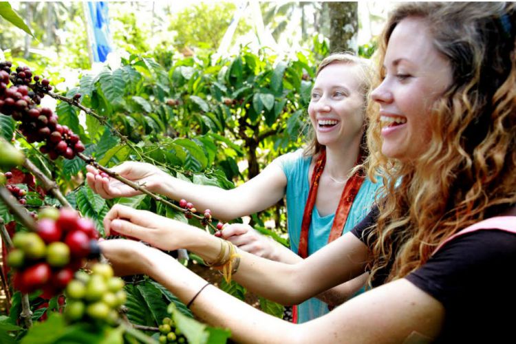 Kedua gadis berambut pirang ini tampak menikmati saat mencoba memetik kopi. Mereka bahkan ikut menyangrai kopi secara tradisional menggunakan wajan dan tungku dari tanah liat. Tak hanya itu, mereka juga berkesempatan bermain musik dengan para pemuda yang tengah menyuguhkan hiburan musik tradisional di acara festival.