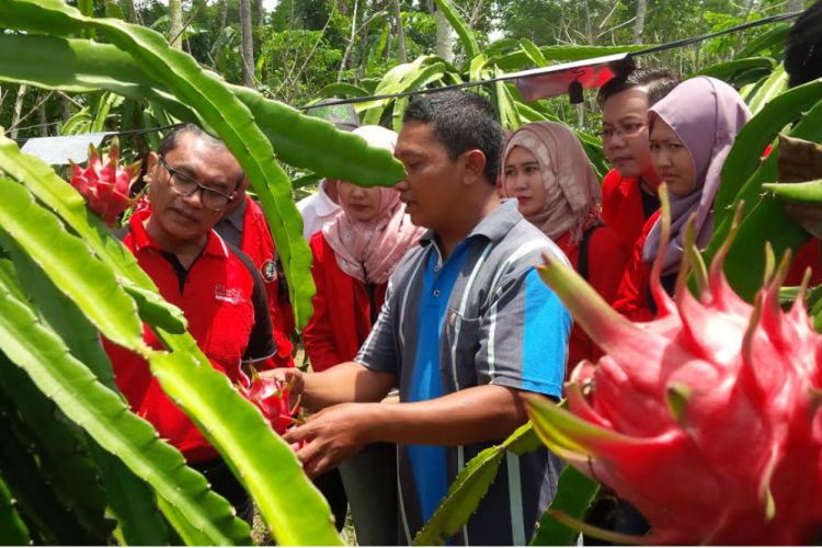 Saat meninjau hasil panen buah naga dampingan Untag ini. Semua obat, pupuk sampai pemantik produktivitas menggunakan bahan organik.