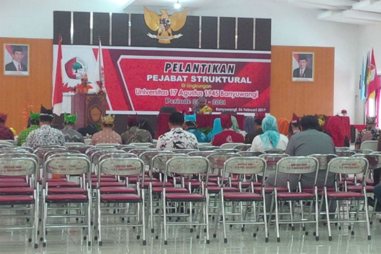 Merdeka.com, Banyuwangi - Universitas 17 Agustus (Untag) Banyuwangi, baru saja melantik 61 pejabat struktural baru, mulai dari struktur dekan fakultas, kepala program studi, dan berbagai pejabat pelaksana teknis di Untag Banyuwangi.