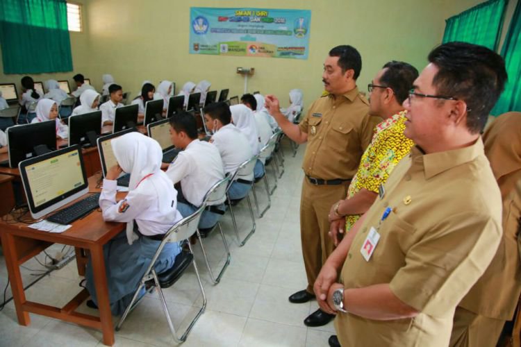 Tiba di SMAN 1 Giri, Wabup langsung menuju lab komputer tempat pelaksanaan ujian. Wabup pun memastikan tidak ada kendala, terutama terkait jaringan internet.