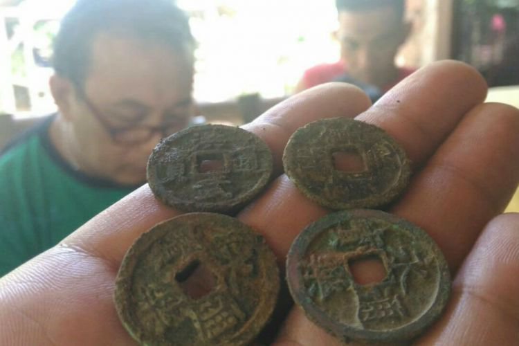 Setelah menemukannya beberapa keping kepeng, mereka gali tanah di bawahnya. Setelah tergali 3 hingga 5 sentimeter, mulai terlihat keping-kepingan koin dengan lubang kotak di tengahnya itu.