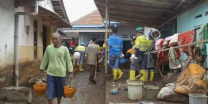 Misri (53), salah satu warga yang tinggal di samping Sungai Badeng, tampak sibuk membersihkan lumpur di dalam dan halaman rumahnya. Pagar rumahnya juga roboh akibat luapan air sungai Badeng yang terjadi sejak Minggu sore, (25/11)sekitar pukul 17.00 WIB.