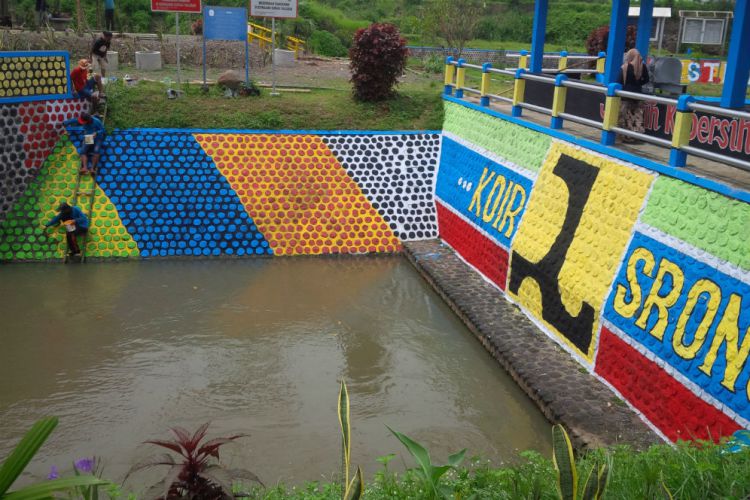 Merdeka.com, Banyuwangi - Dinas Pengairan Kabupaten Banyuwangi secara bertahap menjadikan bantaran sungai lebih bersih dan indah. Sejumlah bantaran sungai seperti Kalilo di Kelurahan Singonegaran, Kabat, Tukangkayu sudah dicat warna-warni.