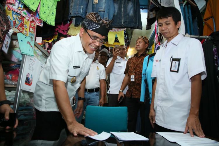 Merdeka.com, Banyuwangi - Pemkab Banyuwangi kembali meluncurkan sistem pembayaran retribusi berbasis elektronik atau e-retribusi untuk para pedagang pasar tradisional. Peluncuran dilakukan di Pasar Banyuwangi, Rabu (25/10), dengan menggandeng PT Bank Negara Indonesia Tbk (BNI). Ini merupakan pembayaran e-retribusi terintegrasi pertama di Indonesia.