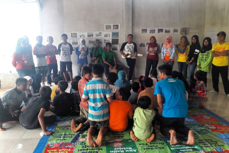 Para relawan berbagi ilmu kepada anak-anak di pedesaan.