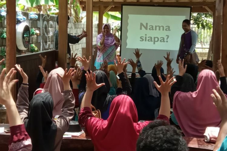 Maulana dan Jaep memberi materi dasar mulai mengenal huruf dengan isyarat tangan, hingga isyarat untuk komunikasi yang biasa digunakan sehari-hari.