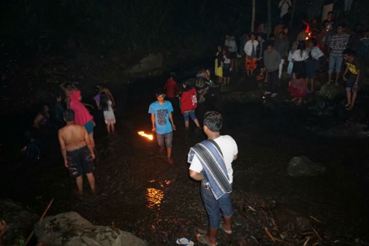 Merdeka.com, Banyuwangi - Tepat pada pertengahan malam penanggalan satu Suro. Masyarakat Gombeng, Kecamatan Kalipuro, kedatangan ratusan tamu dari berbagai daerah. Tujuannya untuk mandi di Sungai Caruk dengan berbagai tujuan.