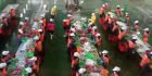 Setelah Matahari naik tinggi, mereka bergeser ke deretan warung untuk memesan kopi, es atau nasi bungkus.