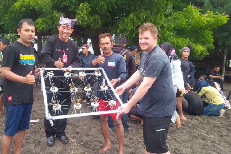 Kegiatan selanjutnya masih berhubungan dengan konservasi, yakni melakukan transplantasi terumbu karang dengan media tanam paralon. Baru kemudian para nelayan dan wisatawan makan bersama dengan menggelar daun pisang di tepi pantai.
