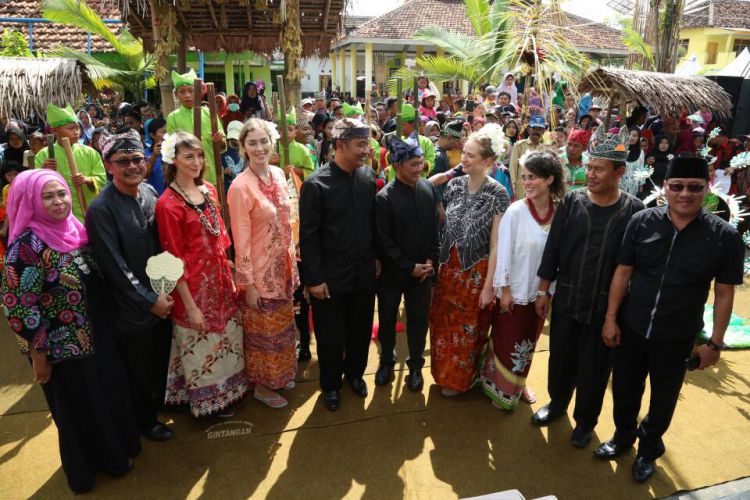 Martina Bujnakova (berbatik hitam) berfoto bersama Wakil Bupati Banyuwangi Yusuf Widyatmoko. ©2017 Merdeka.com