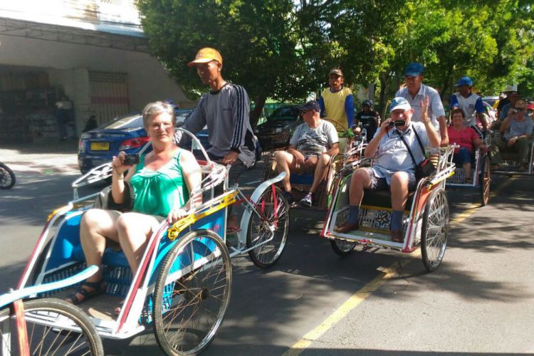 Dengan diangkut 31 becak, mereka diajak menyusuri kota Banyuwangi. Start dari Dinas Kebudayaan dan Pariwisata, berkeliling hingga ke Taman Blambangan, Taman Sri Tanjung, Pasar Blambangan dan Klenteng Hoo Tong Bio.