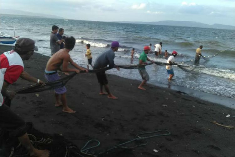 Merdeka.com, Banyuwangi - Warga Pulau Santen, Kelurahan Karangrejo, Banyuwangi, punya cara unik saat mencari ikan. Cukup menebar jaring di tepi pesisir Selat Bali, beragam jenis ikan seperti lemuru bisa ditarik ke tepian. Panjang jaringnya bisa mencapai 500-1000 meter. Butuh minimal 4 sampai 8 orang untuk menarik jaring ke tepian usai ditebar. Dan itu telah menjadi ciri khas warga Pulau Santen turun temurun.