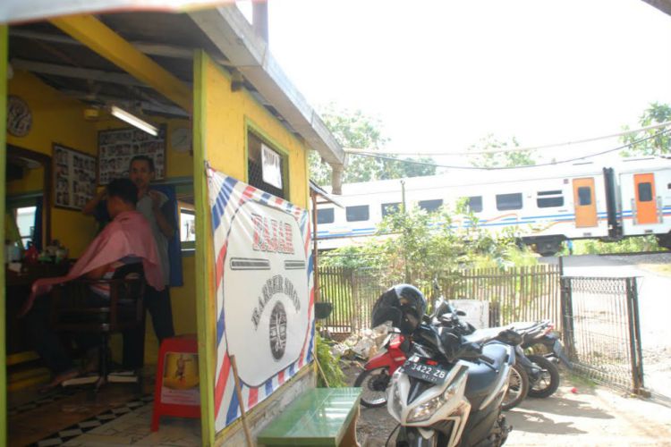 Siswandi dan barber shop miliknya yang tak jauh dari perlintasan kereta api. ©2016 Merdeka.com