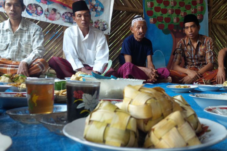 Mulai sekitar pukul 15.00 WIB, warga sudah mulai berdatangan di rumah yang memiliki acara selamatan. Setelah aneka hidangan seperti ketupat, sayur, lauk-pauk dihidangkan, tuan rumah akan membakar kemenyan sebagai simbol adat istiadat leluhur.