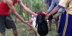 Unik, sebelum disembelih kambing ini didandani terlebih dahulu