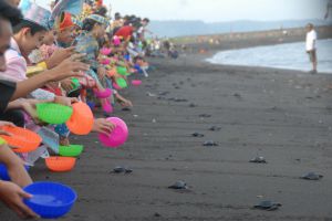 Peringati Sumpah Pemuda, ratusan pemuda lepas 245 tukik di Pantai Boom